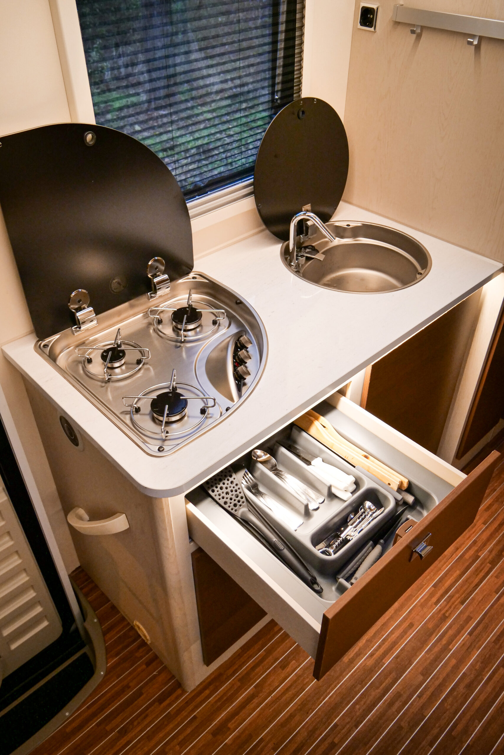 – pachet consumabile de start (1L ulei, 10L AdBlue, hartie igienica solubila, substante chimice pentru toaleta ecologica si pentru curatenia generala a autorulotei, consumabile generale sau pentru bucatarie, 2 butelii pline GPL etc.);
