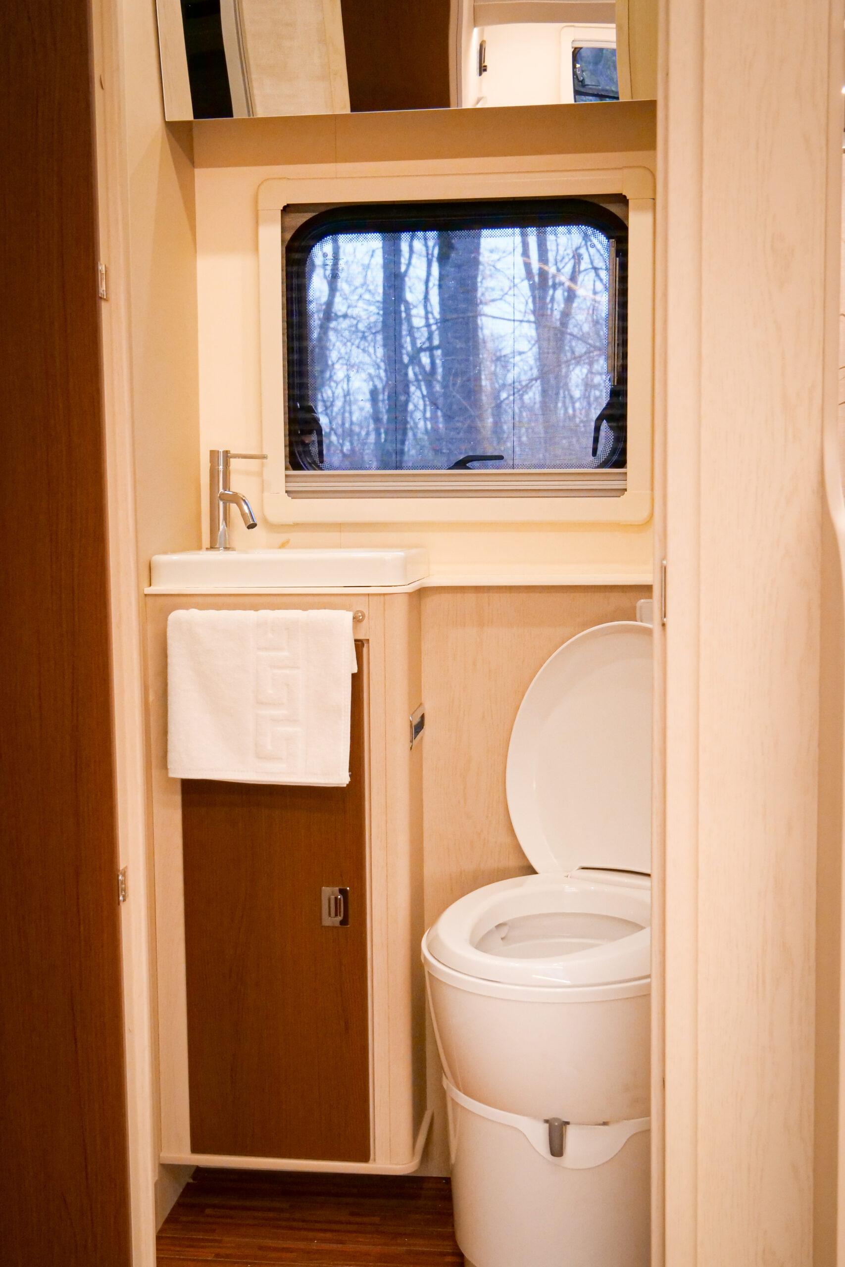 - Baie complet echipată cu chiuvetă, WC ecologic și cabină duș;